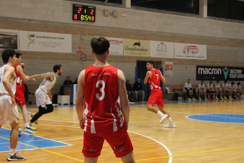 In un palazzetto improvvisamente ammutolito, la partita riprende con la reazione dei BULL DOGS grazie a un ottimo GIANLUCA VIOLA che, entrato in sostituzione di ROMANIN, con 5 punti sul finale di quarto, di cui una bomba allo scadere, consente di tenere FAGAGNA a distanza: 14–19 il parziale al termine del primo quarto.