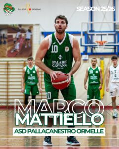 La società annuncia la riconferma di Marco Mattiello, alla sua 22ª stagione da Senior e 7ª consecutiva con la maglia della Pallacanestro Ormelle!
