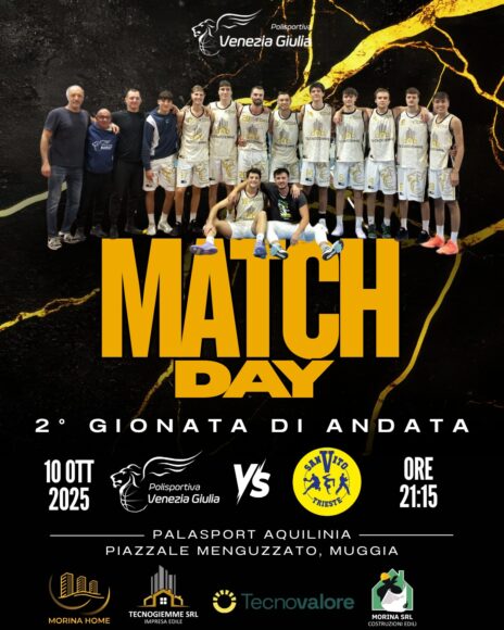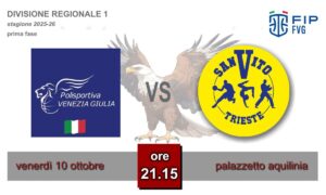 Dopo l’affermazione nel turno precedente ai danni dell’Azzurra, la Tecnogiemme Venezia Giulia ritorna tra le mura amiche del palAquilinia venerdì 10 ottobre (start ore 21.15) per affrontare il SanVito Pall.Trieste