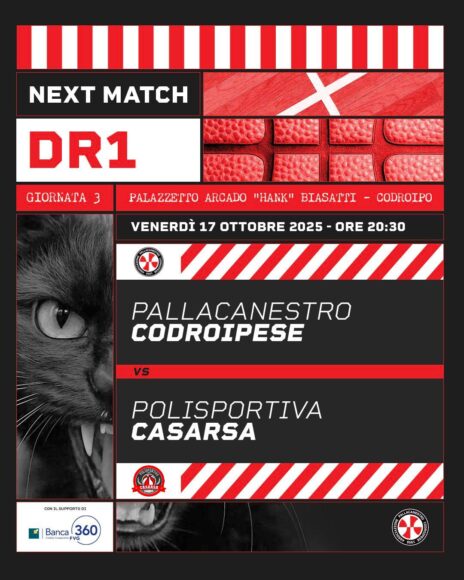 Dopo le due vittorie consecutive, Casarsa torna in campo venerdì 17 ottobre alle ore 20.30 al Palazzetto di Codroipo, dove affronterà Pallacanestro Codroipo 🏀