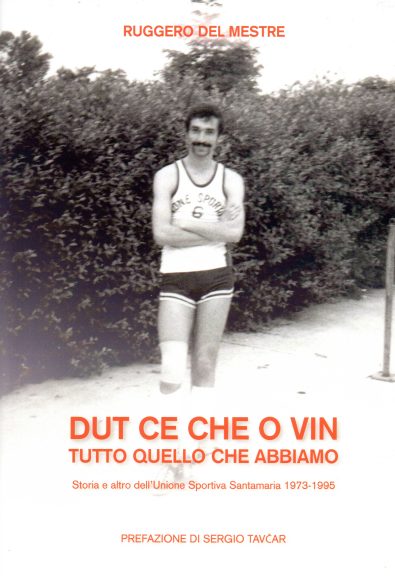 E’ un libro di nicchia anche perché rifacendo la storia dell’U.S. Santamaria, che ne fece diffusione, fa memoria di quella disciplina che un noto telecronista “transfrontaliero” ebbe modo di definire lapidariamente: <il basket è uno sport logico per gente intelligente. Se non lo sei, lascia perdere>. Parliamo, com’è ovvio, di Sergio Tavcar, che ha contagiato generazioni di baskettari tranne i refrattari alla materia grigia di cui sopra. Tavcar in persona, scritturato dal Del Mestre mettendolo all’angolo quale portatore sano del virus del basket nei suoi confronti, chiude proprio con la sua celebre definizione la prefazione a “Dut ce che o vin”, sottotitolo “Tutto quello che abbiamo”, sommario “Storia e altro dell’Unione Sportiva Santamaria 1973-1995”, Ruggero Del Mestre Editore, stampato da 4Graph Srl, via Acquannato, 81030 Cellole (CE). Sì, perché il libro ha un editore indipendente a cui potete rivolgervi all’indirizzo <ruggero.delmestre@libero.it>.
