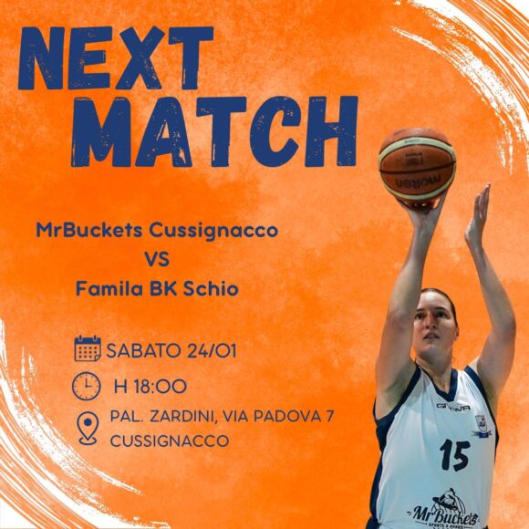 SERIE B FEMMINILE – QUALIFICAZIONE GIRONE UNICO 1^ Giornata di ritorno PALLACANESTRO BOLZANO – U.S. THERMAL BASKET 24 Gennaio 2026 ore 18 MR BUCKETS PLC Cussignacco – FAMILA BK SCHIO 24 Gennaio 2026 ore 18 LUPE SAN MARTINO – POLISPORTIVA
