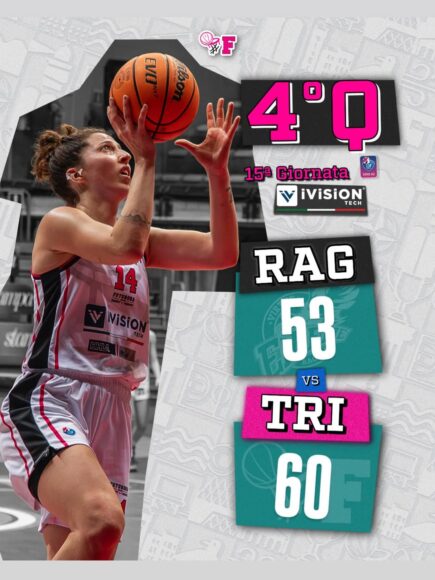 Completato il programma della quindicesima giornata del girone B di Serie A2 femminile, seconda di ritorno. Vittoria per Futurosa iVision Trieste, 53-60 sul campo della Passalacqua Ragusa. Dopo l’8-0 iniziale, le ospiti tornano subito a contatto e il punteggio rimane
