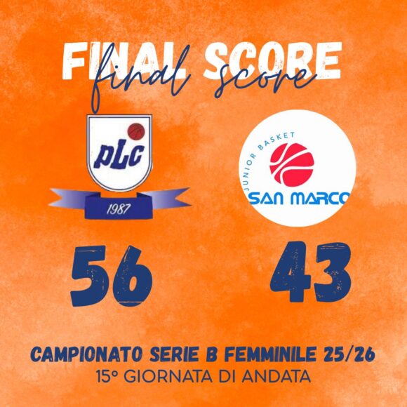 Serie B Femminile – QUALIFICAZIONE 15^ e ultima giornata di andata MR BUCKETS PLC Cussignacco – JUNIOR BK SAN MARCO 56 – 43 (16-14, 27-27, 43-38) Arbitri CARBONERA (UD) e CAMPANARO (UD) PLC: Saia ne, Toniutti 5, Moretti 20, Lazzaro 3, Costantini Scala ne,