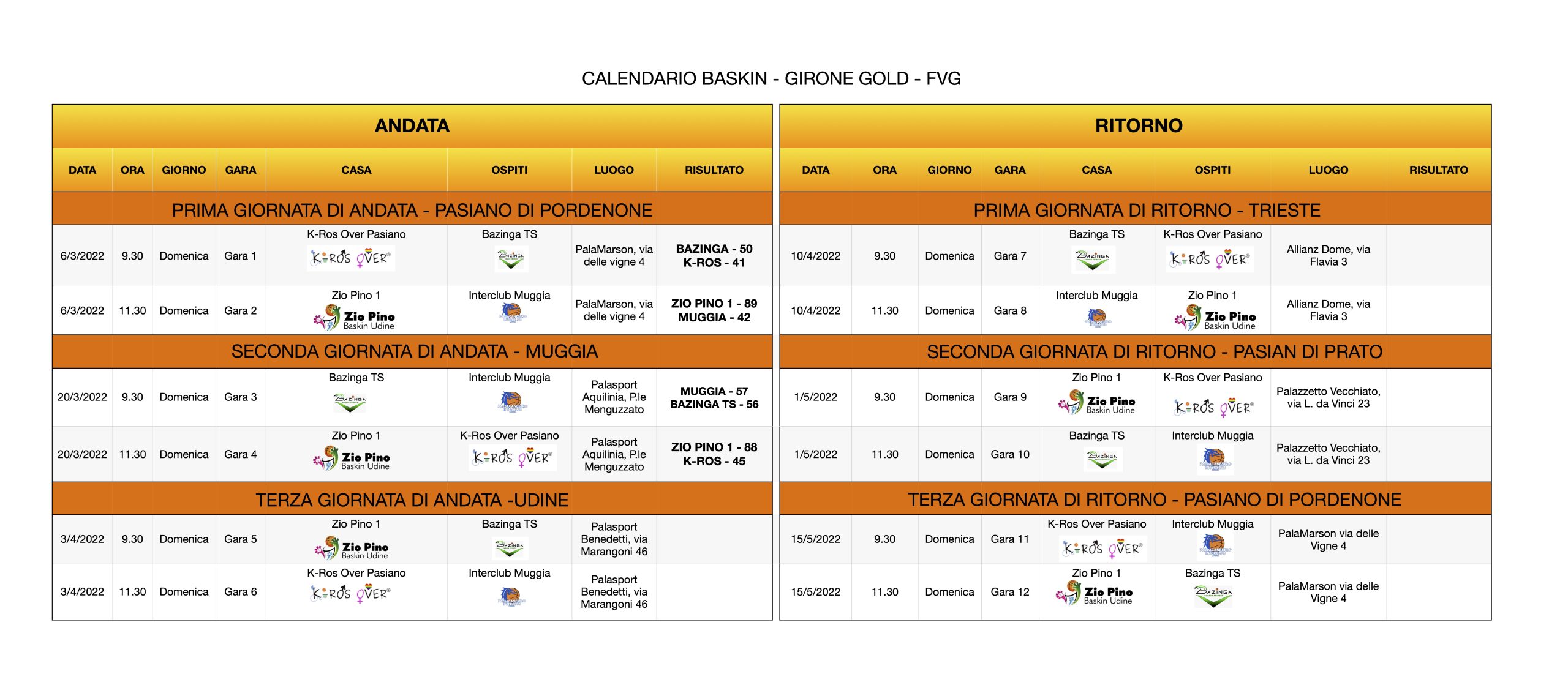 La seconda categoria del campionato regionale Fvg di Baskin era cominciata domenica 13 marzo rilevando il testimone dalla prima giornata del Gold, che sarà una costante di pressoché tutta la stagione con una sola concomitanza domenica 15 maggio.