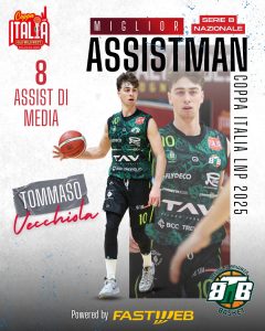 Piccola curiosità: pure l’assistman della coppa Italia Lnp di B nazionale, Tommaso Vecchiola di Treviglio Brianza Basket, è accreditato di 8 passaggi smarcanti: una volta, ora basta passare la palla sul perimetro a un compagno che segna da tre e in automatico il passaggio diventa assist. Che al palaDozza di Bologna si sia incantata la macchinetta delle statistiche?! Certo non si potrà dire come mai non siamo in… 8!