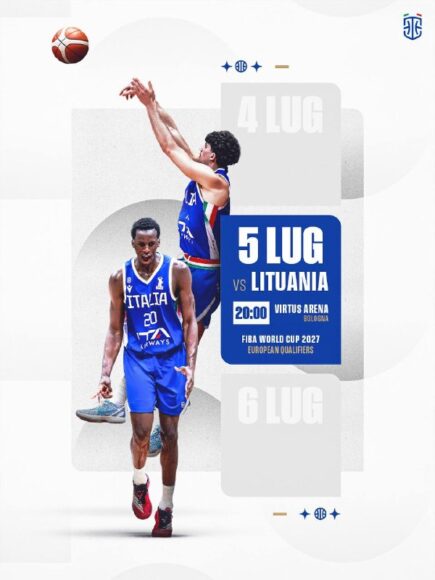 Prende forma la prima parte dell’estate 2026 della Nazionale Senior maschile. Gli Azzurri, in corsa per la qualificazione alla World Cup 2027, giocheranno a inizio luglio le ultime due cruciali gare della prima fase degli European Qualifiers: dopo la trasferta in Islanda del 2 luglio, l’Italia affronterà la Lituania il 5 luglio alla Virtus Arena di BolognaFiere alle ore 20.