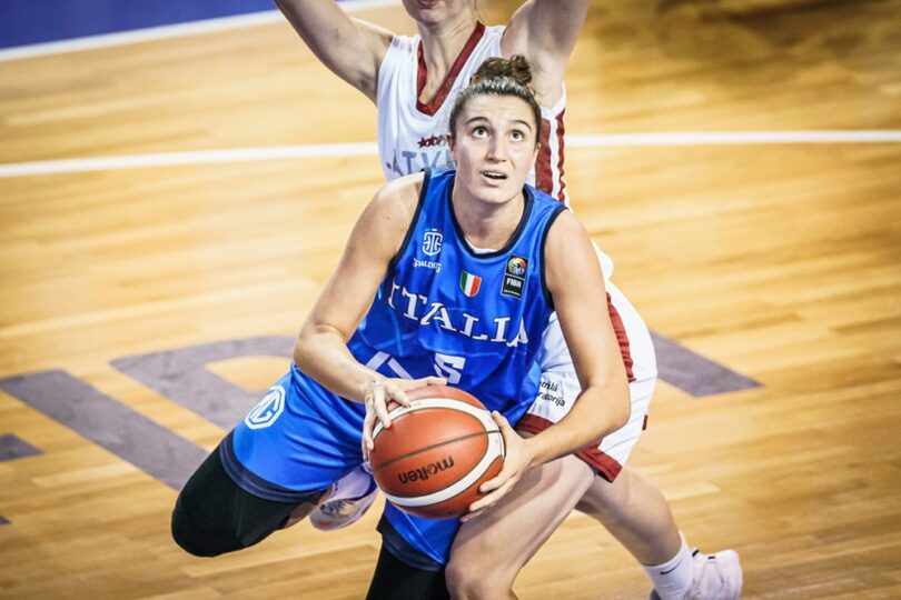 Coach Giovanni Lucchesi contro la Lettonia ha rimescolato le carte. E’ partito con l’inedito quintetto formato dalla play udinese Vittoria Blasigh in coppia con Zanardi, dalla pivot Arado e completato dalla guardia Ilaria Bernardi e dall’ala forte Laura Di Stefano rinunciando a quello schierato finora con il trio di piccole Matilde Villa, Zanardi e Blasigh che costringe quest’ultima in guardia, l’ala Tempia e il centro Martina Fantini. Ne ha ricavato un buon avvio con tutti i 7 punti finali della play – guardia udinese (gli ultimi 2 per il 13-10) e i primi 6 di Zanardi che hanno prodotto prima il 9-4 e poi l’11-6. Con i primi cambi le italiane hanno chiuso sotto il primo quarto, l’unico perso, per 18-19.