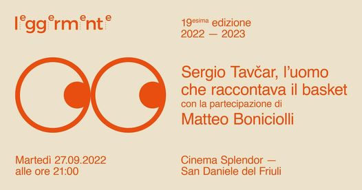 Domani, martedì 27 settembre, alle ore 21, al cinema Splendor di San Daniele del Friuli, Sergio Tavcar presenterà il suo nuovo libro L’Uomo che raccontava il basket, edito dalla Bottega Errante, con la partecipazione di Matteo Boniciolli nell’àmbito della serata inaugurale della diciannovesima edizione di LeggerMente.