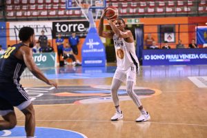 Al tiro dai 6,75, soluzione prediletta dall’attacco alla Vertemati dalla stagione scorsa, ci ha pensato così il nuovo arrivato Lorenzo Ambrosin (13 punti con 3/5 da tre) fin dalla prima parte di gara, troppo sacrificato sull’altare di un Francesco Stefanelli, nè carne nè pesce fino a 5 punti di fila nel finale, che gli parte davanti nelle gerarchie del coach. Ambrosin è andato ad aggiungersi in questa stagione all’estemporaneo Lorenzo Caroti, autore pure di 13 punti, che agisce da solista delle triple anche siderali (3/7) e a capitan Mirza Alibegovic, leader emotivo della squadra, top scorer con 18 (3/8) artefice con due bombe inframmezzate da una di Iris Ikangi del rientro in partita a inizio ripresa e con una terza più avanti. Di poggiare il gioco sotto non se ne parla, anche perché Bruttini – che ha fatto match pari con Jalen Cannon: 6 punti e 7 rimbalzi per l’Mvp juniores ai tricolori di Lignano 2005 neo-udinese e l’ex riattivato la stagione scorsa dall’Apu dopo oltre un anno di assenza dai parquet – si è ritrovato senza la spalla Giovanni Pini sotto canestro. Stavolta, dopo la febbre calata sulle prime cronache che parlavano di una sua uscita anzitempo a Codroipo per un problema fisico, si è appreso a fine gara dalla viva voce di Vertemati che giovedì, prima di ridiscendere a valle dal ritiro di Malborghetto Valbruna, Pini ha accusato un piccolo fastidio muscolare dal quale si conta di recuperarlo la prossima settimana.