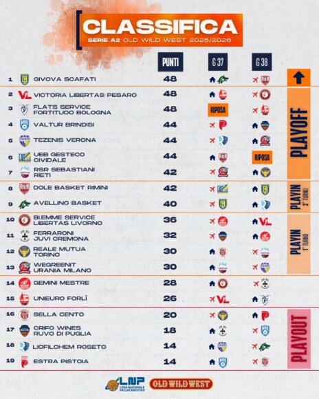 Lega Nazionale Pallacanestro, in accordo con il partner televisivo RaiSport, ha reso nota la programmazione dell’anticipo della 37^ giornata della Serie A2 Old Wild West, diciottesima di ritorno. In chiaro su Rai Sport Hd (58 DTT) e Rai Play (streaming).