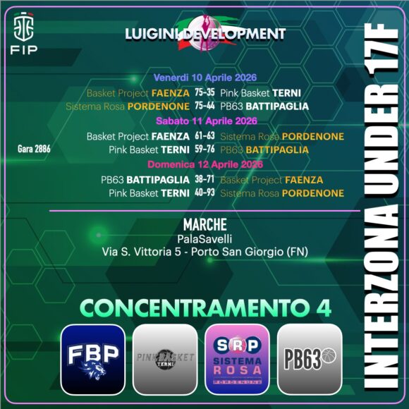 Sistema Rosa Pordenone Con la vittoria contro il Pink Basket Terni, l’U17F del Sistema Rosa finisce imbattuta l’avventura dell’Interzona di Porto San Giorgio. Per conoscere le tre avversarie che incontreremo nella prima fase eliminatoria delle Finali, ora attendiamo l’estrazione dei gironi