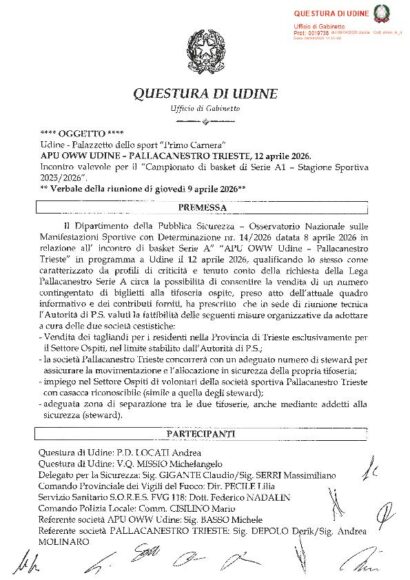 Pallacanestro Trieste Via libera alla trasferta a Udine: saranno 84 i biglietti per il settore ospiti 08 Aprile 2026 Autore: Gabriele Lagonigro Via libera dall’Osservatorio nazionale sulle manifestazioni sportive alla trasferta dei tifosi giuliani domenica a Udine. La nota ufficiale dell’organo del Viminale
