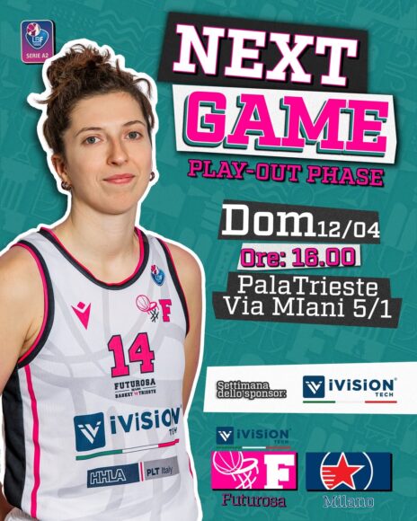 Futurosa #Forna Basket Trieste 𝗡𝗘𝗫𝗧 𝗠𝗔𝗧𝗖𝗛 LBF | Play-out Phase @milanobasketstar Domenica 12 aprile ore 16 palla a due palaTrieste, Entrata unica – Via Miani, 5/1 ABBIAMO BISOGNO DI TE! Domenica esserci contA! Vieni a sostenere le RosaNero. Ti aspettiamo