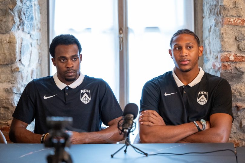 E’ mancato loro il solito inquadramento organico da parte del ds Andrea Gracis, che aveva introdotto e concluso le due precedenti presentazioni. L’ha rimpiazzato il neo-capitano Mirza Alibegovic, anche scanzonato traduttore per l’occasione. Convenevoli a parte, Hickey e Johnson hanno messo in campo sùbito le loro finali di A2: quella persa da Anthony quest’anno contro la Pallacanestro Trieste 2004 dopo avere fatto il tour Fvg negli scorsi play – off, cominciati contro l’Ueb Cividale nei quarti di finale e proseguiti contro l’Apu stessa in semifinale; l’altra vinta da Xavier nel 2022 con Verona proprio contro Udine, tanto che la gara di domani contro la Scaligera nel memorial Piera Pajetta sarà in pratica un derby in famiglia tanti sono gli ex transitati da un fronte all’altro in queste stagioni, compresa quest’ultima. La reciproca conoscenza degli ambienti, di partenza e arrivo, in questi anni di sfide ad alto livello ha favorito il loro passaggio a Udine, dove naturalmente si trovano bene. Hickey assicura che, per quel che conosce del roster Apu e la sua esperienza di finalista perdente con Cantù che gli ha preferito Tyrus McGee scudettato con Venezia nel 2016-2017 e vincitore della Fiba Euorpe Cup con Sassari nel 2018 – 2019, si può fare bene se non meglio con l’Apu. Johnson, oggetto di scambio anche di ruolo con Raphael Gaspardo sull’asse Forlì-Udine quando si è sbloccata la posizione contrattuale del friulano con l’Apu, assicura invece che la squadra giocherà per vincere e le somme si tireranno alla fine della stagione regolare e così sarà anche se i bianconeri andranno ai play-off. Con la presentazione della coppia Usa, non restano che giocatori confermati in rosa: l’altra duo di ali piccole capitan Alibegovic e Iris Ikangi più gli spaiati Lorenzo Caroti play e Matteo Da Ros ala – pivot, cambi degli americani e quest’ultimo anche possibile 5 tattico.