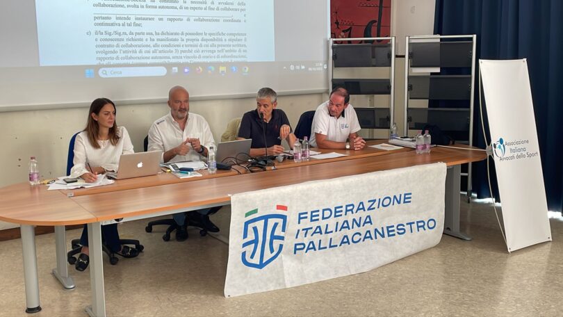 Oltre alla già annunciata presenza dello stand Macron, che ha messo in vendita i prodotti della Nazionale italiana, e alla riunione con il responsabile tecnico territoriale della Fip Fvg, Alessandro Guidi, relativamente al lavoro del comitato regionale sulle giovanili, c’è stato il tempo per assistere alla riunione sull’importante tematica della riforma del lavoro sportivo in presenza del presidente della Fip Fvg, Giovanni Adami, e di Serena Imbriani in rappresentanza dell’Associazione italiana avvocati dello sport  (Aias) Fvg (nella foto di copertina al tavolo dei relatori).