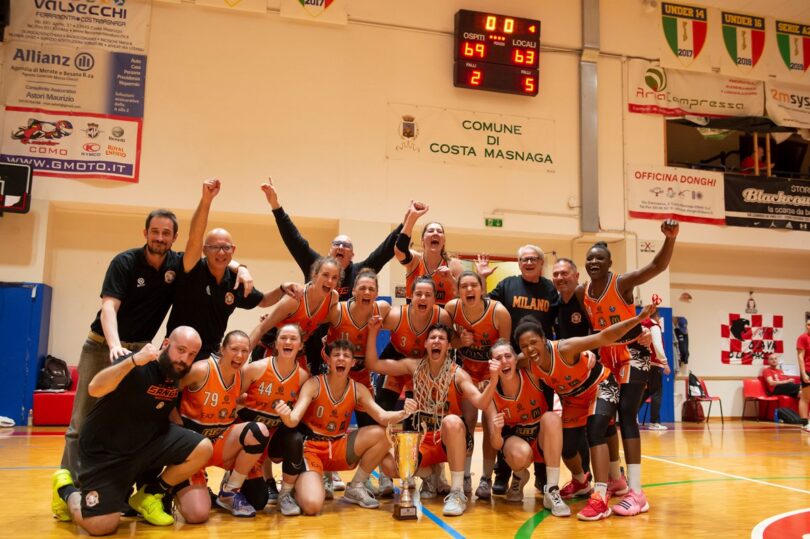 Festa grande per Il Ponte Casa d’Aste Sanga Milano (in foto di copertina), che batte per 63-69 la Limonta Costa Masnaga anche in gara2, dopo il successo all’Allianz Cloud a Milano di domenica scorsa per 74-64, e conquista la promozione in serie A1 femminile vincendo i play – off nel girone Nord di A2. Una partita vibrante vede il Sanga rincorrere in pratica per tutto il match. Grande emozione in casa milanese, con una dedica particolare da parte di tutto il Sanga a Guerrino Pugnetti, grande sostenitore e storico presidente milanese, attraverso le parole di coach Franz Pinotti nel postpartita.