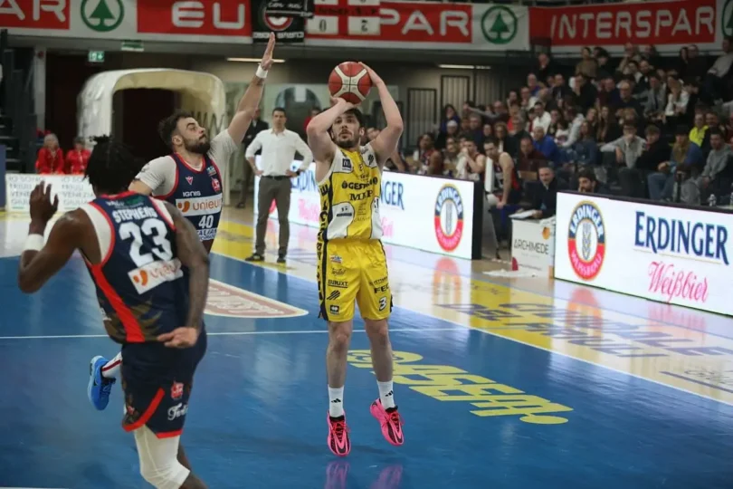 Se gli anticipi del venerdรฌ e in particolare la sconfitta della Fortitudo Bologna a Livorno, rovinosa giร a fine primo tempo (54-24), aveva offerto alla Ueb la chance d’installarsi al terzo posto della serie A2 assieme ai felsinei almeno per