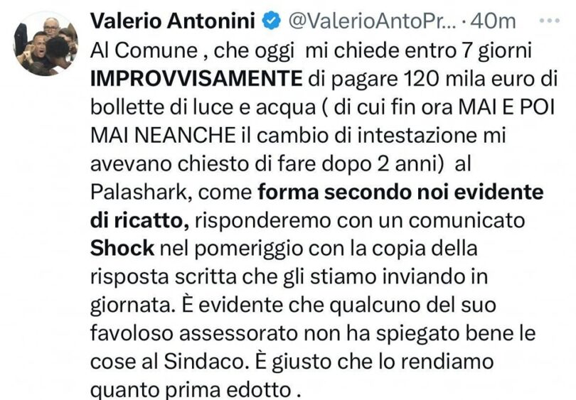 Riscontro alla richiesta di pagamento e sollecito installazione impianto di climatizzazione presso il “Pala Shark”