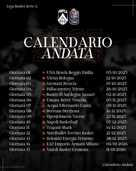 Si comincia il 5 ottobre a Reggio Emilia, poi subito due sfide da brividi al Carnera contro Bologna e Brescia… e poi via, fino al gran finale del 10 maggio!
