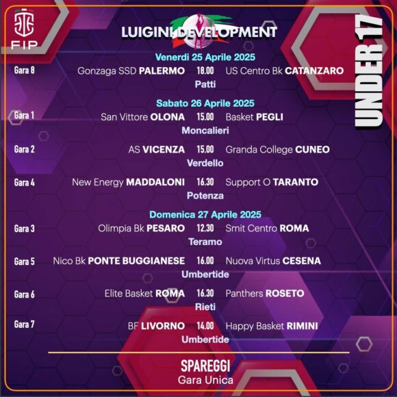 In copertina pubblichiamo la locandina di Luigini Development con il calendario degli spareggi in campo neutro e con gara unica. Diverse gare hanno subìto spostamento a seguito della concomitanza con i funerali di Papa Francesco. Non sono escluse ulteriori variazioni a quanto indicato.