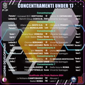 La Futurosa se eliminerà Mirano disputerà, in Toscana, il concentramento 7 in cui debutterà nell’eventualità contro la PB63 Battipaglia (Campania 1), mentre l’altra sfida al via sarà tra la Mercede Alghero (Sardegna 1) e la Stella Azzurra Roma (Lazio 2). Il Srp, qualificatosi a spese di Cuneo, è ammesso al concentramento 3, in programma anche in Toscana, che sarà l’unico ad avere due vincenti degli spareggi inserite nello stesso gruppo. Pordenone debutterà contro l’Umana Reyer Venezia (Veneto 1), mentre l’A.D. Basket Pegli (Liguria 1) attende la vincente dello spareggio 3 fra Bfm Milano e Basket Team Puianello (RE) che è questa ultima per 59-44. Tutti gli altri concentramenti avranno una sola vincente di spareggi.