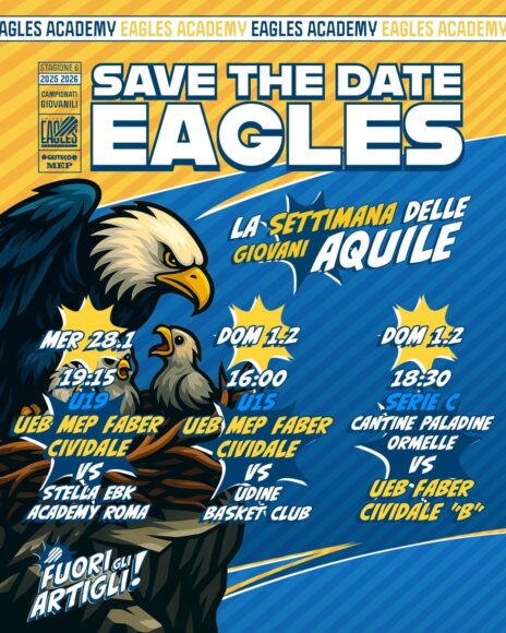 UNITED EAGLES BASKETBALL CIVIDALE – SSDAR OLIDATA ROMA 28/01/26 ore 19.15 PALAZZETTO dello SPORT – Via Perusini CIVIDALE DEL FRIULI (UD)