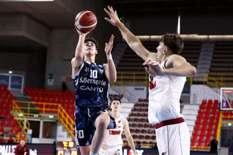 L’inizio col botto (vittoria 82-80 sulla capolista Varese Academy con un gioco da tre punti di Thomas Acunzo) ha rischiato di essere leggermente vanificato dalla battuta d’arresto casalinga con la Robur, ma la giovanissima Pall. Cantù (6 vinte – 4 perse) – Presotto l’unico 2007 del roster – ha blindato il passaggio del turno con un altro finale in volata vinto con Gallarate (87-85) ed il gran secondo tempo a Varese sponda Robur (51-29) per il 99-72 finale. Matteo Molteni (14.9 per gara, con oltre 4 assist e 4 rimbalzi ed un significativo 46% da 3 punti) guida un team lungo e solido – Niccolò Gualdi e Bogdan Zimonjic sfiorano la doppia cifra – in cui ha finito in grande crescita l’azzurrino classe 2009 Simone Ventura (20.3 nelle ultime tre) e che si divide con la prima formativa esperienza senior, nel campionato di B interregionale giocato con la canotta di Saronno.
