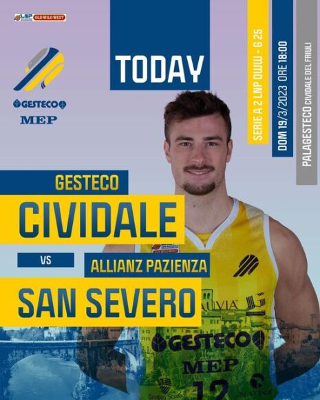 Conquistato grazie alla vittoria nel posticipo contro l’altra neopromossa Rimini un posto nel girone Blu di seconda fase di serie A2 e, di conseguenza, la sicura partecipazione ai play – off, la Gesteco Ueb Cividale di coach Stefano Pillastrini riceve l’Allianz Pazienza San Severo. La gara è in programma oggi alle ore 18, arbitri Daniele Alfio Foti, Jacopo Pazzaglia e Umberto Tallon; diretta streaming su Lnp Pass e differita tv su Telefriuli. All’andata hanno vinto i pugliesi per 55-53 alla fine di una gara guidata dai ducali, ma gettata al vento sbagliando l’ultima rimessa in attacco.