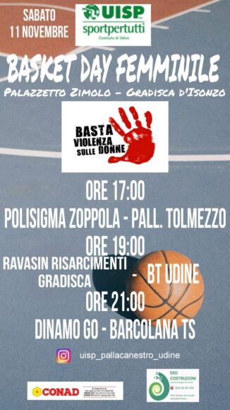 Manca pochissimo all’avvio del campionato femminile Uisp di A1 che, come per le altre categorie, inaugurerà la stagione nell’unica sede del Basket Day. Scenderanno in campo al palaZimolo, ospiti della Ravasin Risarcimenti Basket Gradisca, sei delle ben otto formazioni iscritte quest’anno. Il comitato di Udine, vista la presenza di oltre settanta atlete provenienti dalle quattro provincie regionali, intende in tale occasione dedicare l’evento alla Giornata internazionale contro la violenza sulle donne, per festeggiarle e dare un messaggio unito contro la violenza verso il genere femminile.